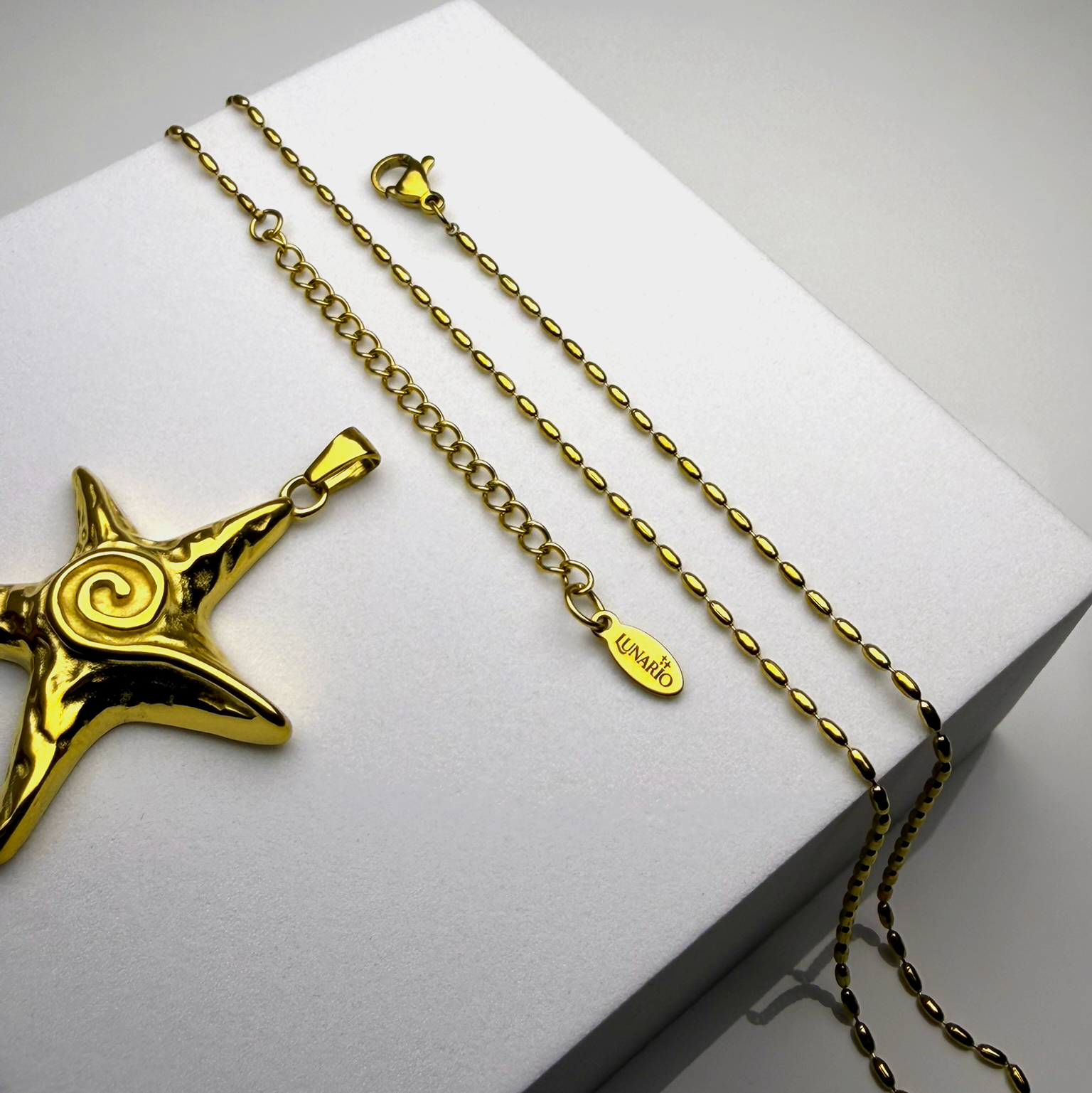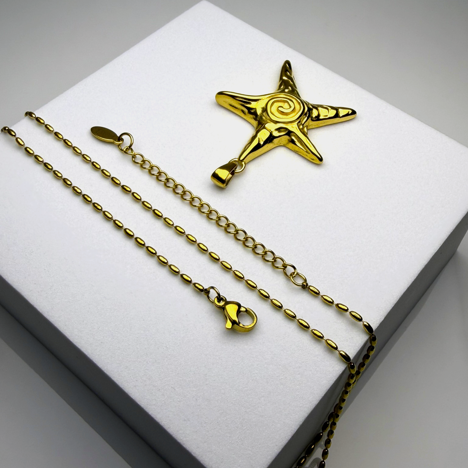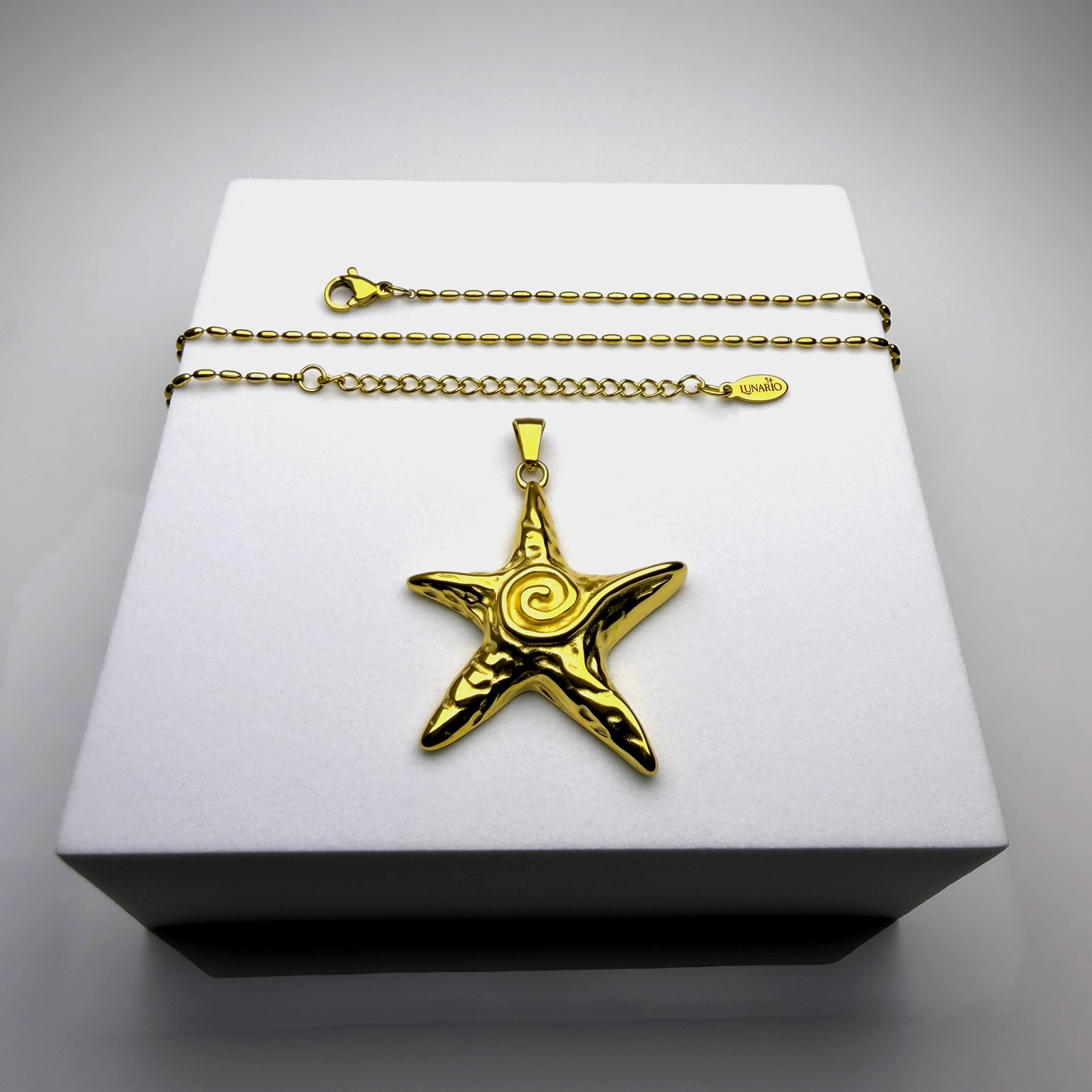 The name Astraea comes from Greek mythology and represents the goddess of the stars, a symbol of purity, hope, and light. The Astraea necklace combines maritime design with celestial elegance. The delicate starfish pendant will become the sparkling centerpiece of your look.