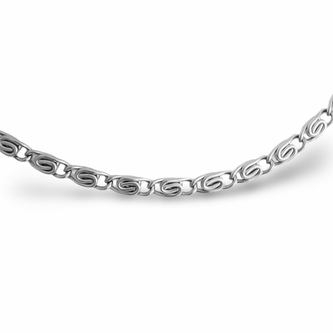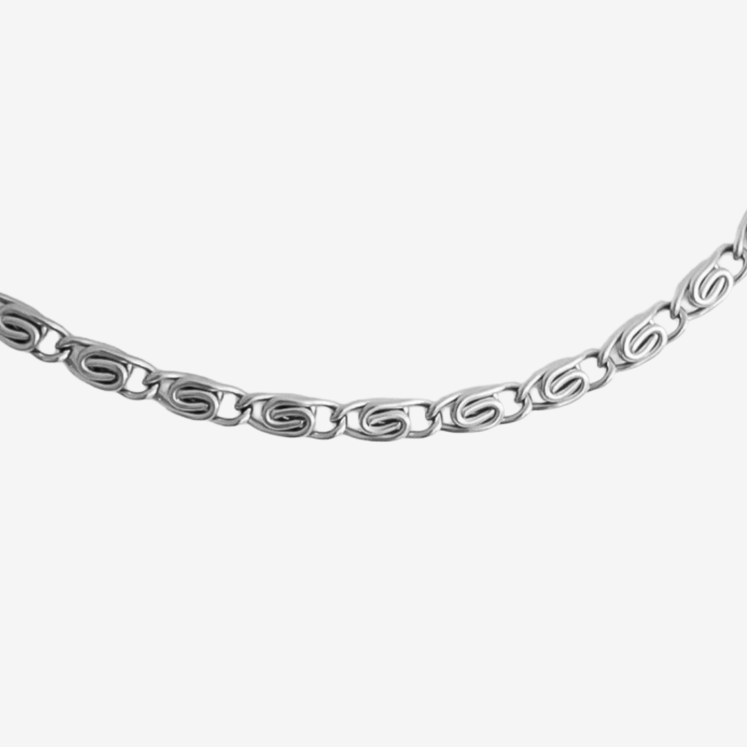 Der Name Celiora steht für Anmut und Unendlichkeit und spiegelt die edle Schönheit dieser Kette wider. Die kunstvoll verschlungenen Glieder symbolisieren Eleganz und Beständigkeit, während das minimalistische Design deinem Look eine raffinierte Note verleiht.