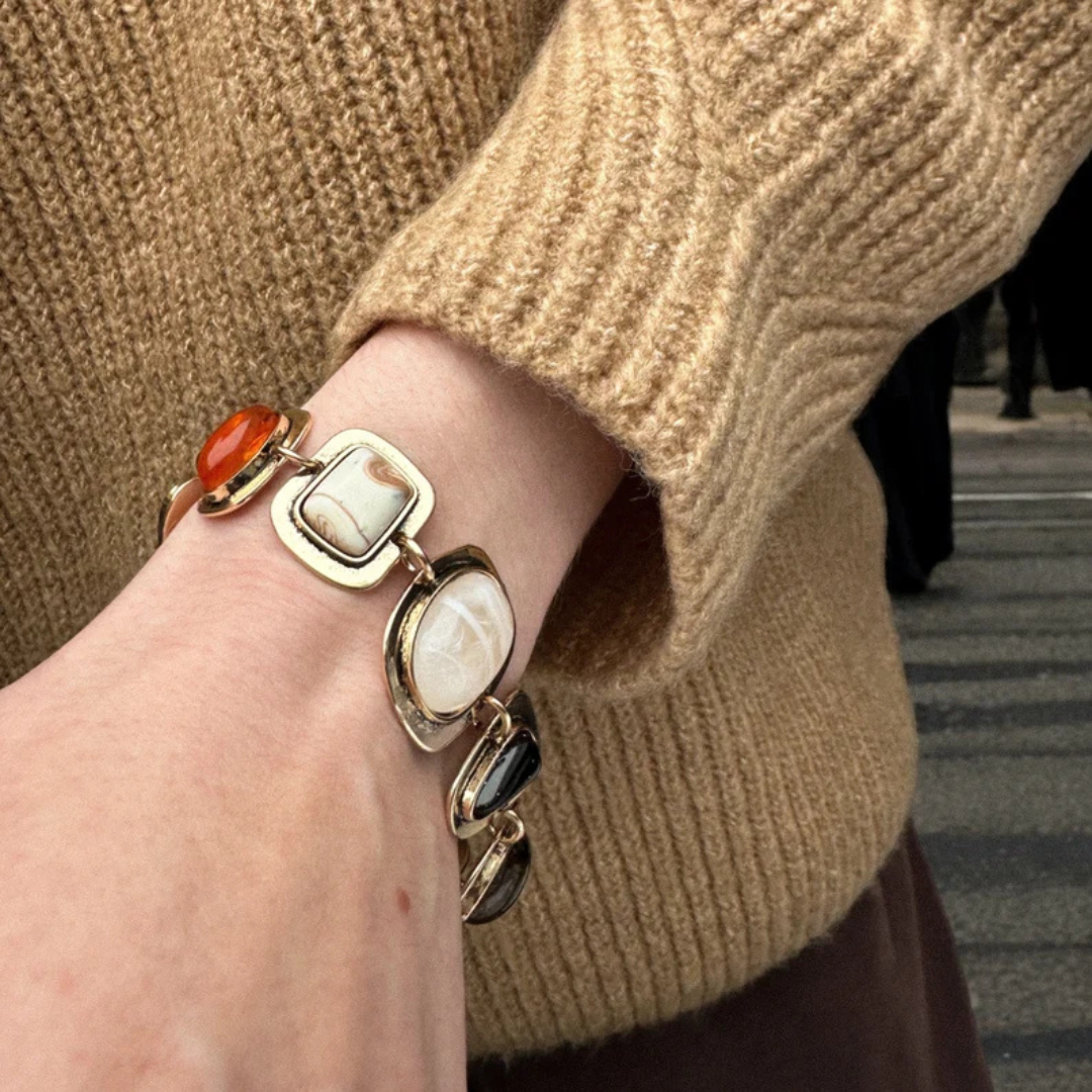 Der Name Solara erinnert an die warme Ausstrahlung der Sonne und symbolisiert Vitalität und Leuchtkraft. Das Solara-Armband vereint Vintage-Charme mit einer mutigen und bohemian Note.