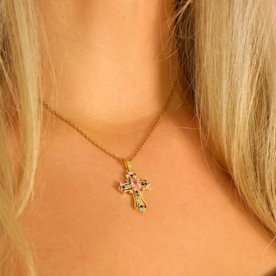 Der Name Veridiana leitet sich vom lateinischen veritas - „Wahrheit“ - ab und steht für innere Stärke und Klarheit. Die Veridiana-Halskette kombiniert filigrane Linien mit einem dezenten Kreuzanhänger und verleiht deinem Look eine elegante, spirituelle Note voller Bedeutung.